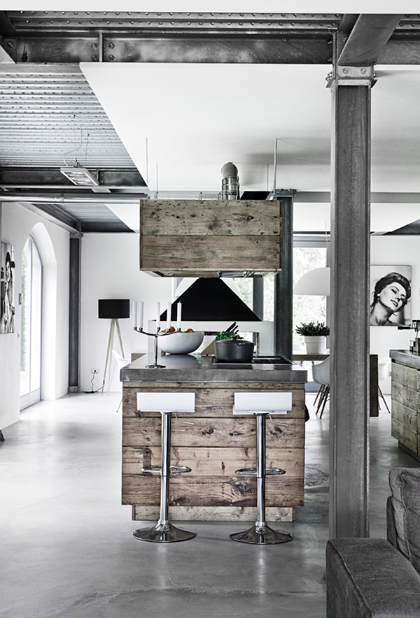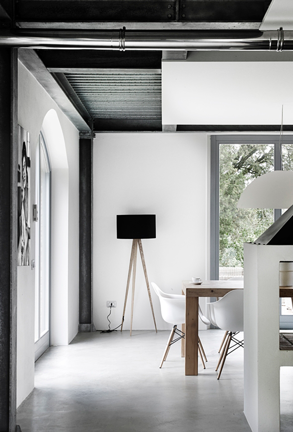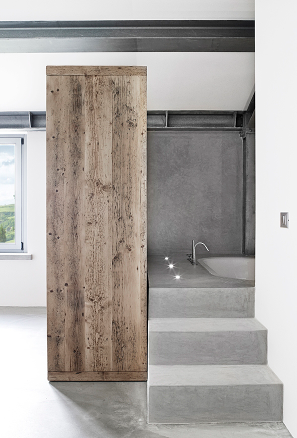 When you visit villa Vergelle, which is located in Tuscany, get ready for surprise. Traditional exterior of the former farm house hides a more luxurious industrial interior with concrete floors and iron pilasters. Some of the furniture pieces are made of old unpainted wood and together with raw cement finish that gives the inside of the otherwise beautiful vacation home a more profound character and the so called industrial masculinity.